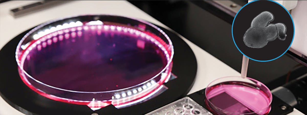 Top view of a collection of high-quality organoids classified by a robotic liquid handler.